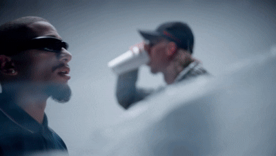 "Chief Keef – „I Don't Like“ und ich lauf' in, Weiße Nike, schwarze Long, ich lauf' mit Nazar in JeansBin mit Wife, leb' gesund, ich trink' Codeine-Vitamin"